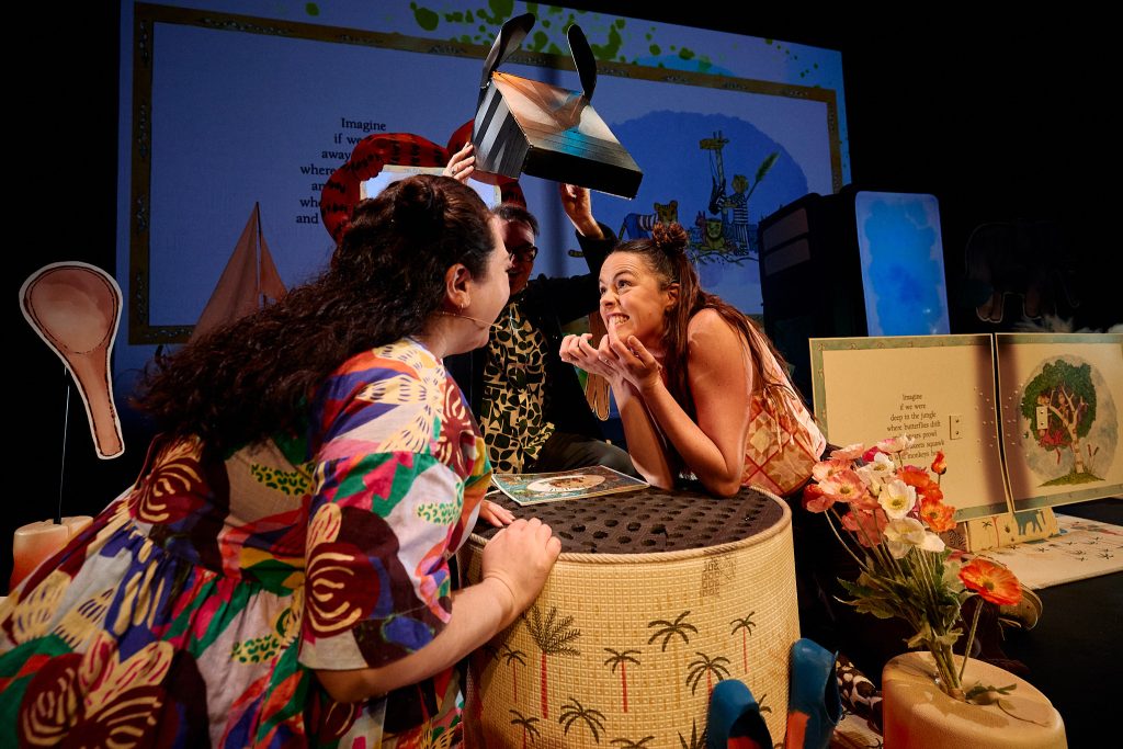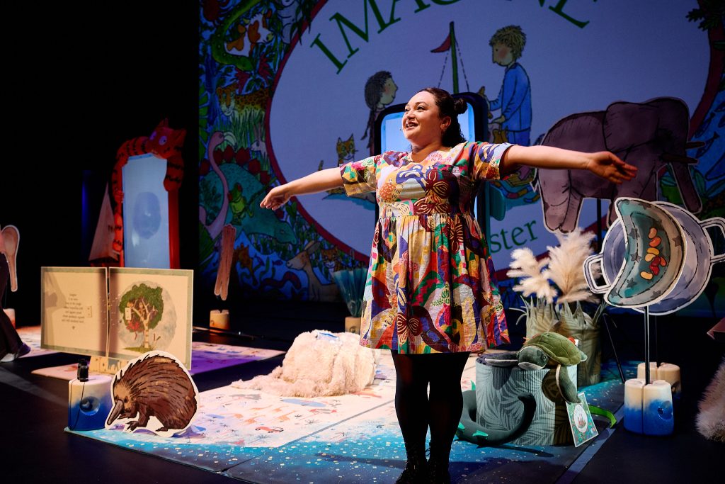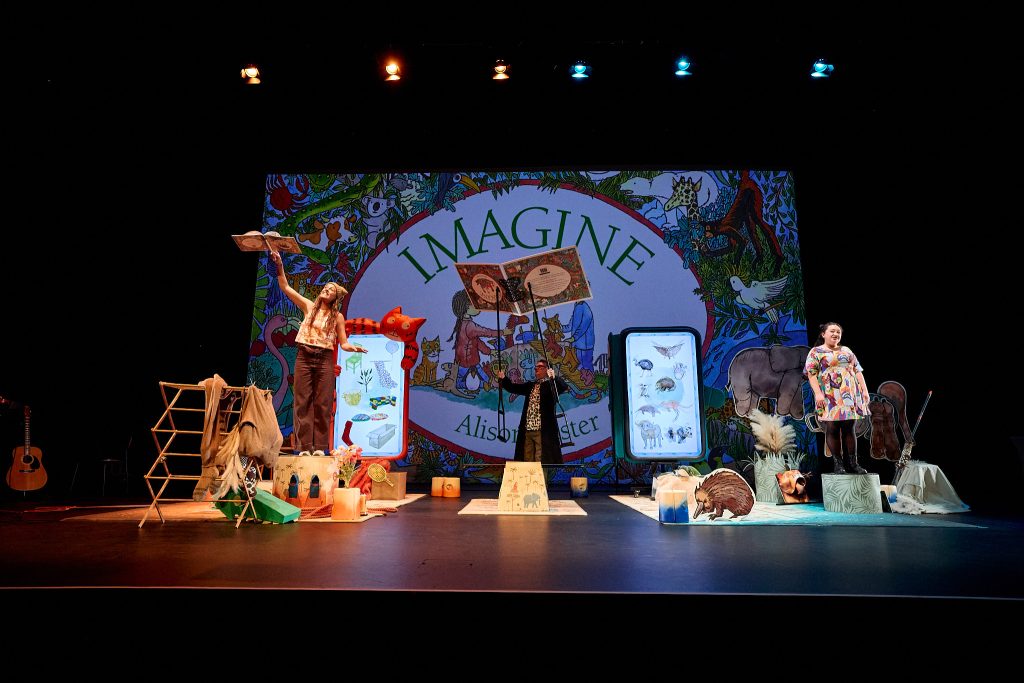 Using cutting-edge technology, IMAGINE LIVE seamlessly blends live action with digital puppetry, body mapping, face recognition, animation, and original music. Characters and objects travel between real and animated worlds, creating an immersive, multi-sensory experience that captures the magic and wonder of Alison Lester’s illustrations in dynamic and surprising ways.